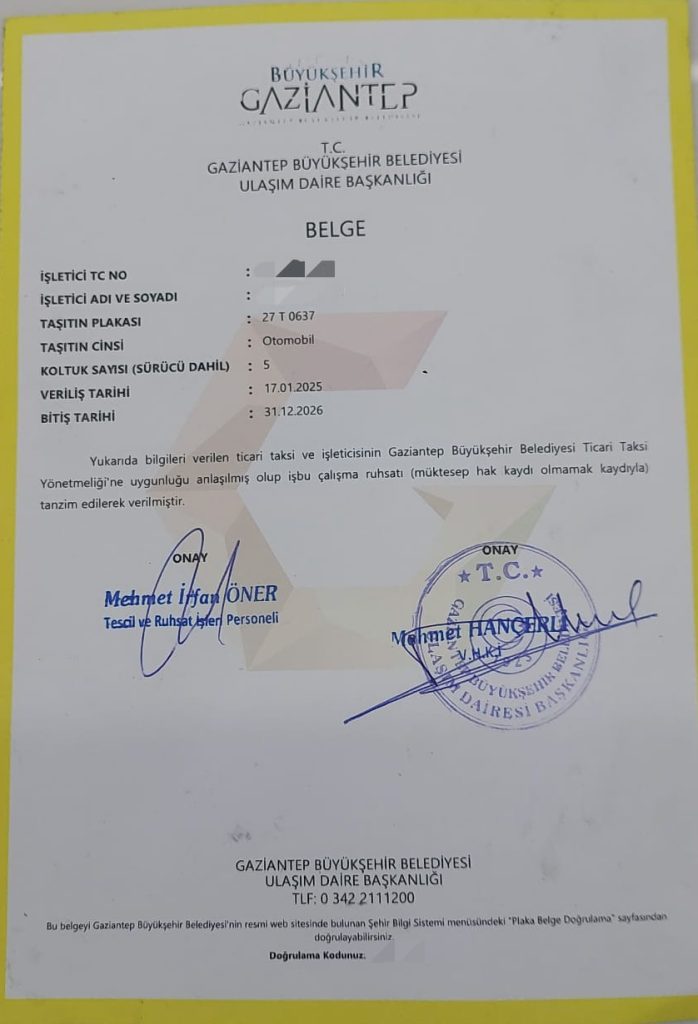 Tüm araçlarımız T serisi ticari plaka taşımaktadır ve ilgili Şoförler ve Otomobilciler Odası’na kayıtlıdır. Ayrıca belediye ruhsatlı ve yasal taşıma izinlerine sahiptir. Yolculuk öncesinde talep ederseniz plaka ve sürücü kimlik bilgileri tarafınıza iletilir.